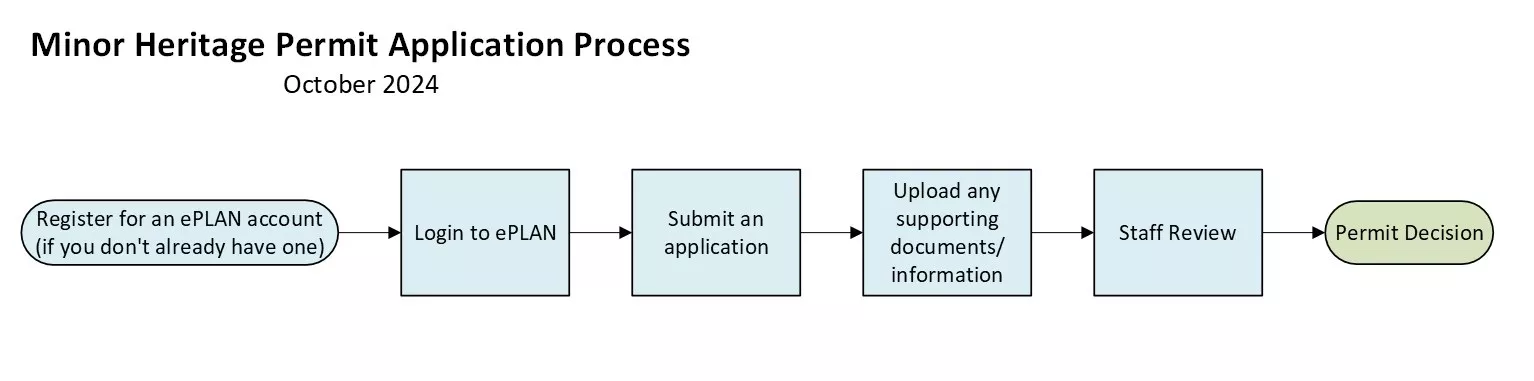 There is no longer a separate application form. The application is submitted online using using ePLAN with all the plans and documents identified in the Checklist. For Minor Heritage Permit applications without a Checklist, simply upload drawings, plans, photographs or specifications that will assist in the review of the application.